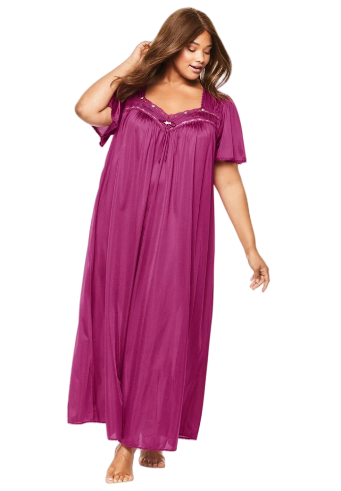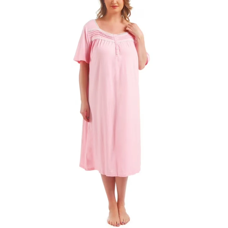 A plus size nylon nightgown provides a smooth, lightweight feel that’s both durable and breathable. Nylon’s moisture-wicking properties keep customers comfortable all night long. With nylon growing in popularity in 2025, offering vibrant colors and soft textures will appeal to a wide range of customers. Stand out by offering versatile designs for different body types and adding features like adjustable straps for a better fit.