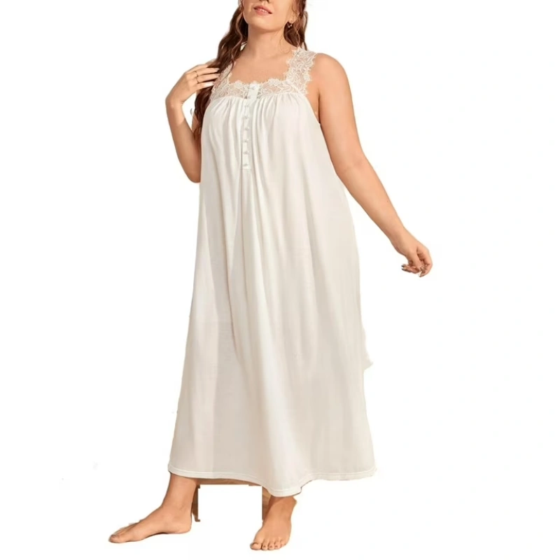 A plus-size sleeveless nightgown offers comfort and breathability, especially in warmer months. The sleeveless design allows for freedom of movement and better airflow, ensuring a restful night’s sleep. Sleeveless styles remain popular in 2025, so offering a variety of colors and lightweight fabrics will attract customers. Adjustable straps can provide a more customized fit, setting your brand apart with inclusive, stylish designs for year-round comfort.