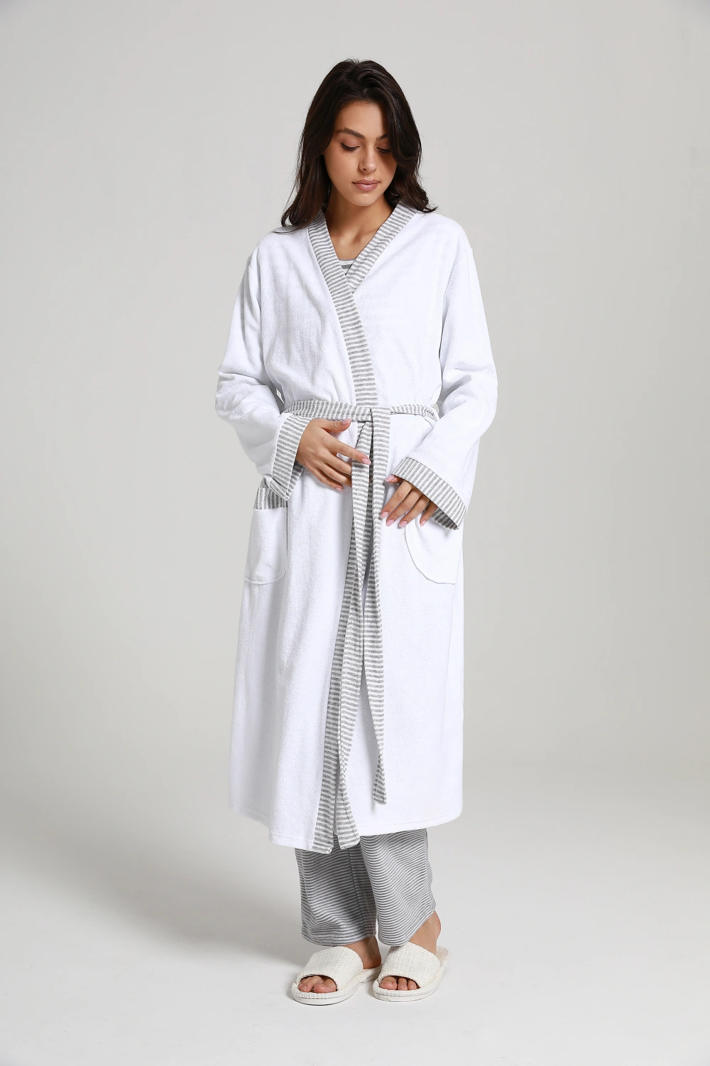Contrast color woven detailing on the collar, cuffs, and pocket openings