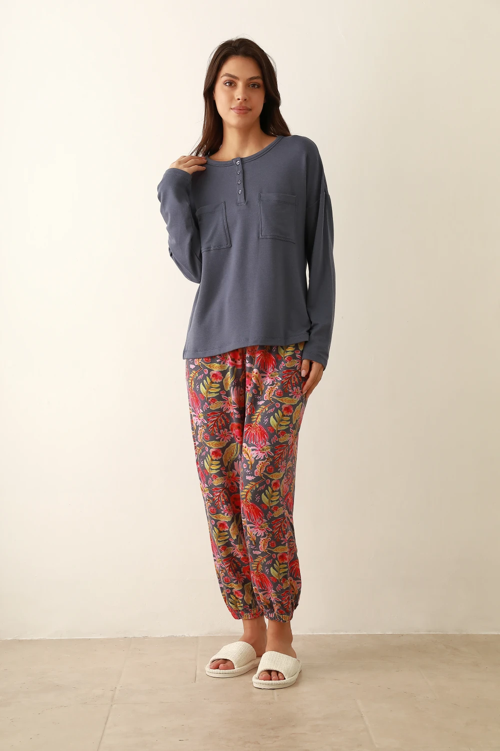 The pants feature an all-over print, with either a pull print or imitation pull print effect.